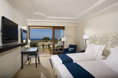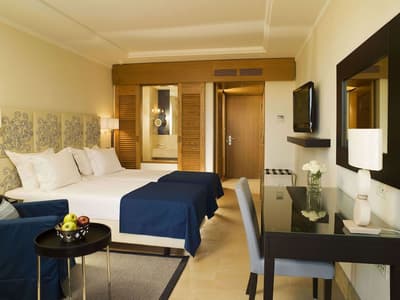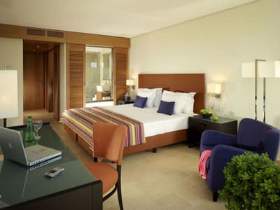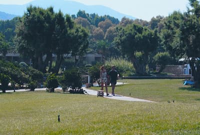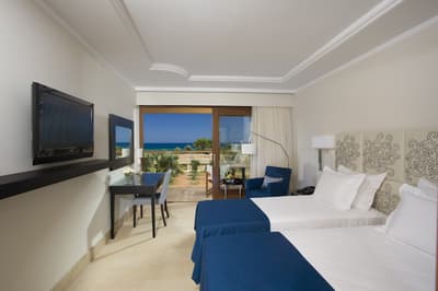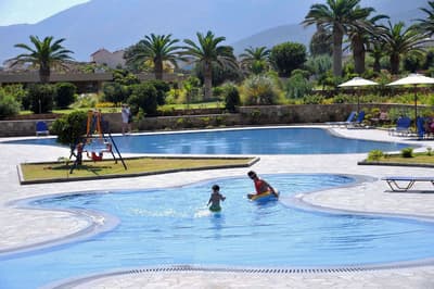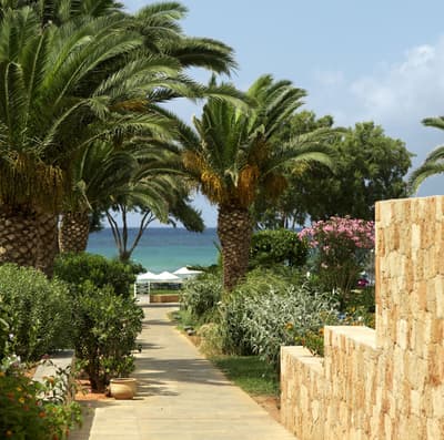 C’est au nord de la Crète, entre collines et plages, verts et bleus que le Kernos Beach Hotel vous accueille. Au calme, même si c’est grand, et le bâtiment principal pas des plus engageants. 287 chambres, certaines en bungalows. La déco ? Plutôt sympa et contemporaine : des tons clairs, une petite touche d’osier ici, un coussin coloré là, simple et agréable ! La terrasse ou le balcon ? Vue sur les très beaux jardins verdoyants, les montagnes joliment renflées ou la clarté de la mer Egée. Oui, au bout vous attendent plage blonde et batterie de transats abrités sous les parasols blancs. Vous cherchiez bien des vacances au calme et les pieds dans l’eau, non ? Vous le visualisez, là, le cocktail sur fond de coucher de soleil ? Trois piscines d’eau douce, pour les grands, les enfants, et la pataugeoire pour ceux qui sont vraiment tout petits. Car oui, vous pouvez venir en famille ! Au resto, des sièges et des menus adaptés. Mais attention, pas de club dédié, vous devrez les garder... Pourquoi ne pas alterner journées de farniente et excursions ? A moins d’une demi-heure, deux sites fabuleux : le musée d’Héraklion et le palais de Cnossos. De quoi faire le plein d’archéologie !