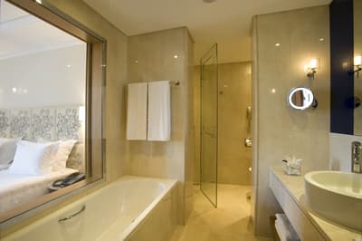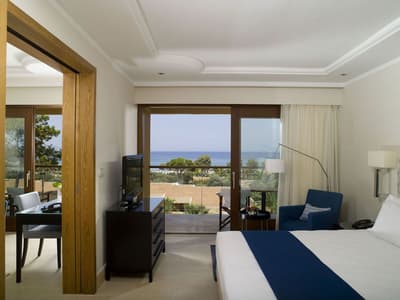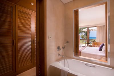 De son balcon aménagé de belles chaises, elle profite d’une vue merveilleuse sur l’océan. Elle a tout le nécessaire pour un séjour confortable et agréable. Elle accommode un grand lit et dispose d’un fauteuil dans un coin de la pièce. Salle de bain chic avec une baignoire.
