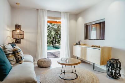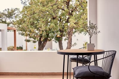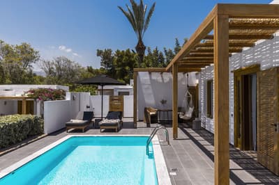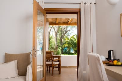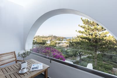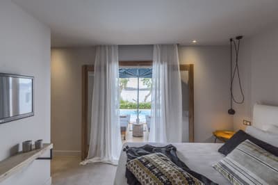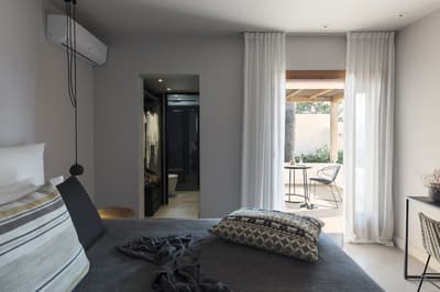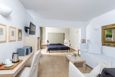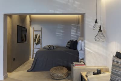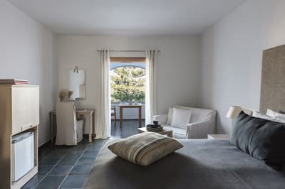L’ensemble est dans un style de décoration contemporaine avec une palette de couleurs douces, des éléments de design crétois faits main et de meubles faits sur mesure par des artisans locaux. La chambre est dotée d’un lit king ou de lits jumeaux et la salle de bains en mosaïque de couleur terre est équipée d'une douche à effet pluie. Le tout dans une atmosphère conviviale !