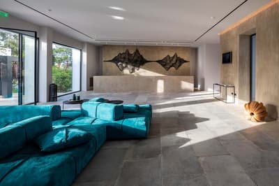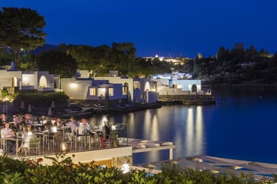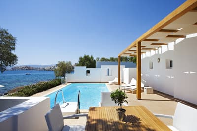 Du style avant tout ! Le Minos Beach Art Hotel 5 étoiles a choisi sa tendance : minimalisme et Art contemporain. Un cadre idéal pour esthètes voyageurs. La preuve dès le lobby : une vaste pièce nue et écrue. Au centre, un gros canapé bleu canard et au mur une œuvre arachnéenne noire aussi longue que le comptoir vide du réceptionniste. Convaincu ? Empruntez les couloirs et les escaliers, ils sont parsemés de sculptures de toutes sortes. Les jardins aussi ! Vous croirez parcourir une galerie d’art en plein air. Du beau partout…Dans cette riche végétation méditerranéenne, pas de faute de goût ! Vous pouvez vous baigner dans la piscine en pierres brunes, rassuré. Elle se fond dans le décor, comme les chaises longues en bambou abritées du soleil par des bandes de bruyère. Même les petites tables de métal noir du Kafeneion Adeste s’éparpillent autour d’une haute fontaine taillée dans la masse. Ici, boire un ouzo accompagné d’olives devient un acte raffiné. Vous rejoindrez votre bungalow de la même manière. En bord de mer, le petit bâtiment blanchi à la chaux avec son arche typiquement grecque cache un privilège : votre petite plage de rochers pour nager avec les poissons. Ah, ne pas oublier demain le massage « Crétois » à l’Ananea Spa ! La thérapeute a cité huile d’olive et raki…