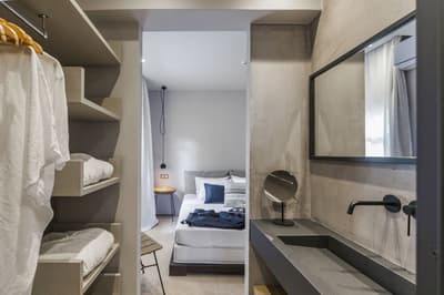 L’ensemble est dans un style de décoration contemporaine avec une palette de couleurs neutres et minimalistes, des éléments de design crétois faits main et de meubles faits sur mesure par des artisans locaux. La chambre est dotée d’un lit king et la salle de bains en mosaïque de couleur terre est équipée d'une douche à effet pluie. Le tout dans une atmosphère conviviale !