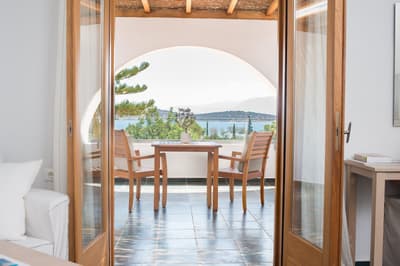 Située au premier étage du bâtiment principal, elle profite d’une vue panoramique sur la baie et les jardins et dispose d’un grand balcon avec mobilier pour vous détendre, lire votre livre préféré tout en sirotant votre café.