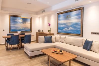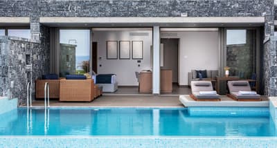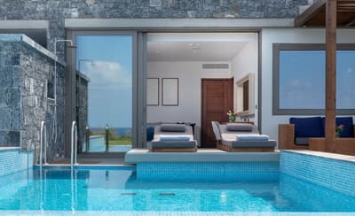Cette suite profite d’une vue imprenable sur la mer et dispose d’une piscine chauffée privée pour nager en toute intimité de jour comme de nuit. Sur le balcon entièrement meublé, vous pourrez vous détendre, lire un bon livre ou prendre des bains de soleil.
