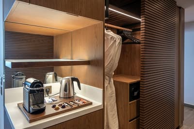 TV satellite LCD 49" et chaînes musicales, Téléphone direct, Appels de réveil (automatiques), Télévision payante à la demande, Climatisation et chauffage à réglage individuel, Système d'éclairage intelligent (plein-lecture-humeur-sommeil), Coffre-fort électronique (format ordinateur portable), Minibar rempli de marques internationales (en supplément), Café et thé gratuits (réapprovisionnement quotidien), Machine à café Nespresso (remplissage quotidien), WiFi gratuit, Connexion Internet haut débit (en supplément), PlayStation (sur demande), Système de musique Bluetooth avec contrôle tactile.