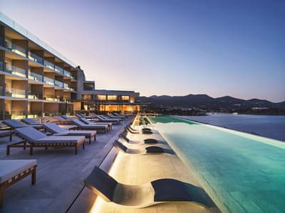 Bienvenue à Agios Nikolaos, au Niko Seaside Resort, dernière pépite de la collection MGallery. Ouvert en 2022, cet écrin 5 étoiles et réservé aux adultes réinvente le séjour de luxe au bord de la mer… en ville. A une petite heure de route d’Héraklion, cette grande bâtisse dont les balcons s’inspirent des ondulations des vagues n’a pas d’accès direct à la mer (10 minutes à pied). Mais c’est le prix à payer pour une situation exceptionnelle face à la baie de Mirabello. La vue à couper le souffle depuis les deux piscines à débordement, dont une sur le toit, fait oublier rapidement cette petite concession. L’architecture est épurée : toutes les façades sont blanches pour un contraste encore plus saisissant avec le bleu de la mer Egée. Le Niko raconte sa propre histoire, inspirée de la mythologie grecque, que l’on retrouve dans les œuvres contemporaines du lobby ou dans le mobilier minimaliste des chambres. Presque toutes sont dotées de leur propre bassin à vitres de verre, sur le balcon. Le plus dur sera de choisir entre les 13 gammes de chambres et suites. Non… rectification, le plus dur sera peut-être de quitter ce cocon exclusif. Du coup, après quelques excursions historiques, on revient sans regret profiter des 3 restaurants et des bars, répartis sur les différents niveaux. Petit-déjeuner en tête-à-tête avec la mer au Mira, découverte des saveurs crétoises à l’Ariagne ou un verre de Raki au seul bar à sushis de l’île. Cerise sur le Tzatziki, les hôtels de la collection Mgallery proposent à leurs hôtes de vivre des « moments mémorables ». Ici ce sera une croisière privée à la découverte de l’île voisine déserte de Spinalonga.