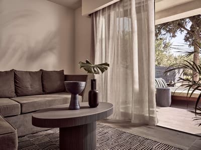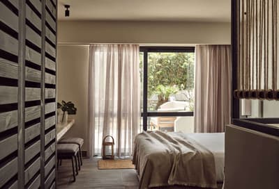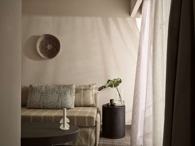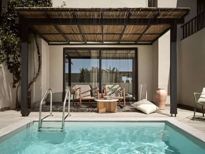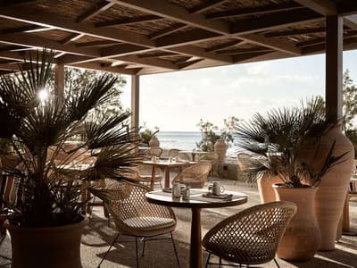 Pas fan de foule ? Le sud de la Crète, où est implanté le Numo Ierapetra Beach Resort, est bien moins fréquenté que le reste de l'île. Et c'est une chance car visiter la région n'en sera que plus motivant ! Votre hôtel campe le long d'une plage de galets, au bord de laquelle des eaux cristallines invitent carrément à la baignade. Dans le hall d'accueil, on vous attend déjà, tout sourire. Pendant que le réceptionniste accélère les formalités d'enregistrement, une délicieuse boisson au pamplemousse et à la noix de coco vous est offerte. L'occasion d'apprécier l'esprit des lieux, constellés de plantes exotiques, avec un mobilier en bois tout aussi exotique, et d'observer les gens qui vont et viennent, dans des vêtements fluides en lin ou encore en mousseline de soie. On se croirait dans une retraite pour yogis ! De l'autre côté du hall, des palmiers à pied d'éléphant scandent des pelouses parfaites qui descendent jusqu'à la mer, sur lesquelles donnent des chambres supra élégantes, entourées de murets de pierre. Leur balcon ou terrasse sont abrités par de superbes auvents de bois et de bambou. Tout aussi discret, le bâtiment principal semble se replier sur lui-même, à l'image d'une médina. Le design est partout époustoufflant. Du plus petit tabouret aux luminaires, tout est élégant, surprenant, harmonieux, sublime. Quant à la piscine paysagée, quelle forme audacieuse et quel cadre ! Dans cette atmosphère greco-zen, on se détend au spa, puis on s'amuse... Car le soir, au bord de la piscine, des DJ's se produisent sous des faisceaux colorés qui font danser les feuilles de palmier ! Enfin, si on parle beaucoup ici de pleine conscience, on parle aussi beaucoup de conscience écologique. Et on agit !
