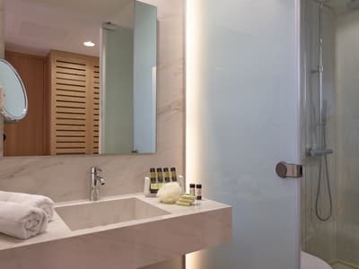 Équipements de bain, Télévision par câble-satellite, Placard, Service de ménage quotidien, Téléphone à ligne directe, Sèche-cheveux, Air conditionné à contrôle individuel, Ameublement moderne, Réfrigérateur, Coffre-fort, Canapé-lit, Messagerie vocale, Réveil téléphonique, Accès Internet Wi-Fi (gratuit).