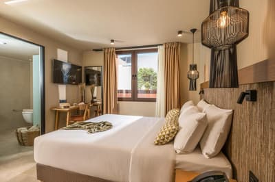 Cet hôtel 4 étoiles a un charme fou ! Même s'il n'a pas de plage, l'esprit vacances est bel et bien là. Le cadre, les chambres et la piscine sont magiques…