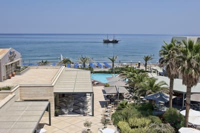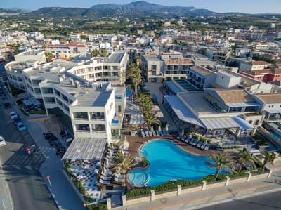 Un établissement de taille moyenne posé en bord de mer, à distance de marche de la ville de Rethymnon. Avec une plage privée, un personnel à l’écoute et des infrastructures bien-être de qualité.