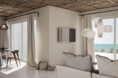 D’une dimension généreuse, elle dispose d’une piscine et de lits de séjour. Elle a les pieds dans l’eau et bénéficie d’une vue merveilleuse sur l’océan. Elle accommode un grand lit et dispose de fauteuils dans son coin salon. Salle de bain chic avec douche à effet de pluie ou baignoire.