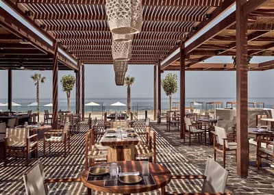 La parenthèse enchantée en mode luxe et immersion totale dans l’esprit ressourçant de la Crète : il faut pousser les portes de l’hôtel The Royal Senses Resort & Spa pour ça ! Tout y est pensé pour vous garantir d’entrer dans une bulle de sérénité, avec la Crète qui se dévoile en version originale. Rien que l’architecture de l’établissement vaut le détour : des cases géométriques harmonieuses qui descendent en cascade sur la colline jusqu’à l’immense piscine rehaussée de quelques palmiers élégants. On note surtout les couleurs de terre cuite et autres teintes naturelles qui se distillent un peu partout, à l’intérieur comme à l’extérieur. La déco est dingue avec une belle mise en valeur des céramiques et créations des artisans locaux. Mais vous n’avez encore rien vu jusqu’à votre chambre : un refuge paisible autour d’un lit king size avec une grande ouverture sur la mer turquoise. On aime beaucoup les matières naturelles dans les tons beige et tout le luxe assuré par le groupe Hilton ici. Certaines chambres ont carrément leur propre piscine privée ! Plus loin, le spa de l’hôtel vous permet de vous détendre complètement dans les effluves typiques de l’île, avec une très belle carte de soins, un hammam crétois et une piscine intérieure délicieuse. Et à table, c’est le bonheur : on a exactement ce qu’on vient chercher en Crète, avec des produits frais et locaux déclinés de différentes façons. Il y en a pour tous les goûts avec les 4 restos ! Du vegan au plus viandard, avec un agneau de folie cuit dans un four typique de l’île. Et bonne nouvelle, ce petit paradis se réserve aussi avec les enfants, qui bénéficient d’un super kids club ! Bref, la bonne pioche pour les familles, mais aussi les couples en quête de romantisme et d’immersion crétoise.