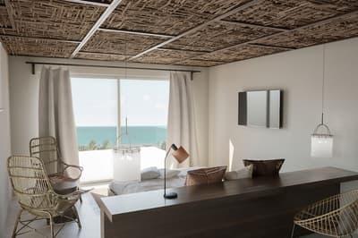 Elle a les pieds dans l’eau ! De sa terrasse aménagée de lits de séjour, elle profite d’un accès direct à la piscine du complexe. Elle bénéficie d’une vue merveilleuse sur l’océan. Elle accommode un grand lit et dispose de fauteuils dans son coin salon. Salle de bain chic avec douche à effet de pluie ou baignoire.