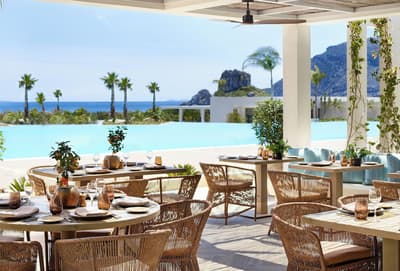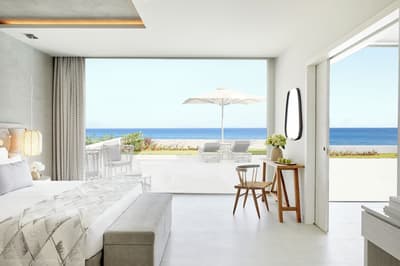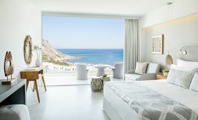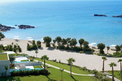 L’Ikos Aria réussit un véritable un tour de force : le luxe tout compris. Le top pour que vous puissiez passer des vacances l’esprit plus zen. En parlant de zénitude, elle vous tombe dessus dès votre arrivée. La sensation d’espace est absolue ! Les installations s’étirent en longueur au bord de la plage. Partout de jolis aménagements paysagers et des bâtiments grands ouverts sur l’extérieur. Les pieds dans le sable doré de la plage de Kefalos, prenez une grande inspiration avant de plonger dans eaux azur de la mer Egée. A quelques brasses du rivage, l’îlot de Kastri et sa ravissante petite chapelle bleue et blanche. On parie que vous ne résisterez pas à aller faire sonner sa cloche ? Côte chambres, aucune faute de goût. Là aussi, la sensation d’espace est permanente. Du blanc immaculé joliment souligné par quelques touches de gris et de bois clair. Faites une petite pause sur votre balcon privé. Café Nespresso ou boisson rafraîchissante dans votre mini-bar ? Les deux sont compris dans votre forfait Infinite Lifestyle. A moins que vous ne préfériez l’ambiance live jazz du bar. Côté gastronomie, c’est carrément l’extase. L’Ikos Aria propose un véritable festival de chefs primés et de saveurs diverses. Le plus dur sera de choisir… Demain, l’île de Kos vous attend pour une découverte de ses villages et de ses sites. Le resort met gratuitement à votre disposition une Mini Cooper pour la journée. C’est bon de se sentir chouchouté !