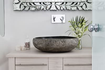 Conçue sur 2 niveaux, elle profite d’espace, de confort et d’intimité. La suite baigne dans un cadre merveilleux. Le balcon est complètement aménagé pour apprécier la vue époustouflante. Elle accommode un très grand lit et dispose d’un salon meublé de canapés-lits. Salle de bain chic avec douche à effet de pluie.