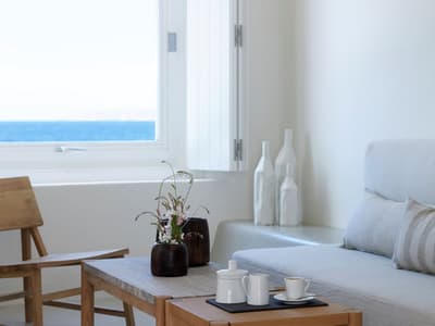 Le top ! D’une dimension généreuse, la véranda dispose d’une piscine et d’aménagements extérieurs pour apprécier la vue sur la mer d’Égée. Le cadre est parfait pour se relaxer et se couper du quotidien. Son salon est meublé de beaux fauteuils. Salle de bain chic.