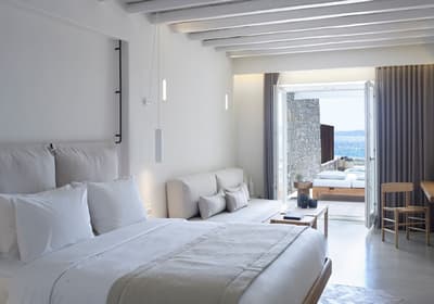 Un établissement de luxe idéal pour être un peu à l’écart de la folie du centre-ville. L’adresse parfaite à Mykonos pour une retraite épicurienne et romantique à deux.
