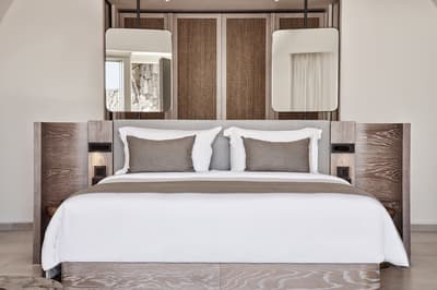 Le top ! Vraiment spacieuse, cette belle villa a tout ce qu’il faut pour accommoder toute une famille. D’une dimension généreuse, le balcon dispose d’une piscine, de lits de séjour et d’une petite table à manger. La vue sur l’océan turquoise est exceptionnelle. Elle bénéficie de 2 chambres et d’un canapé confortable. Salles de bains avec douches à effet de pluie.