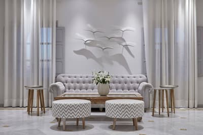 Malgré sa taille, plutôt impressionnante comparativement aux autres hôtels de Santorin, El Greco Resort & Spa n’en reste pas moins un très bel établissement particulièrement séduisant pour plein de raison. D’abord, il est parfaitement situé, à quelques dix minutes à pied de la ville de Fira, et constitue un point de départ idéal pour découvrir l’île et ses mille et uns trésors. Ensuite, il reste très couleur locale avec ses bâtiments blancs aux toits arrondis et ses jardins parfaitement entretenus. Enfin, il offre un rapport qualité-prix intéressant quand on apprécie les prestations haut de gamme sans pour autant avoir le compte en banque de Beyonce. Si le kiff ultime de vos vacances c’est de vous poser pépouze sur un transat pour dévorer le dernier Musso, alors ici vous n’aurez que l’embarras du choix, puisque des transats, il y en a partout autour des cinq piscines de l’établissement, sans compter celle réservée aux enfants et une dernière couverte à l’intérieur du spa ; un spa qui d’ailleurs est juste topissime ! Ne vous reste plus qu’à profiter avant de vous retrouver le soir entre amis pour boire un verre d’ouzo ou un cocktail à l’Aeolos Pool Bar. Ça sent les bonnes vacances à plein nez.