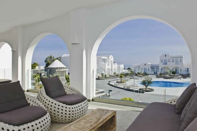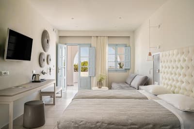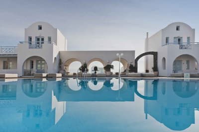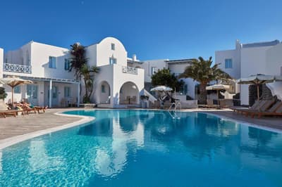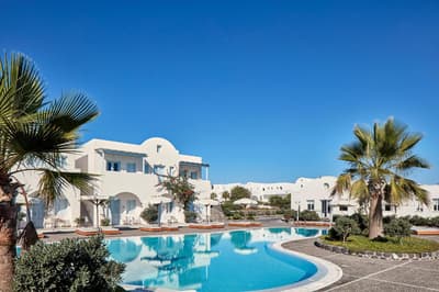 El Greco Resort & Spa est l’un des plus grands hôtels de Santorin, mais aussi l’un des plus appréciés des familles grâce à ses cinq piscines extérieures et son offre en demi-pension, à moins de dix minutes à pied de la ville de Fira.