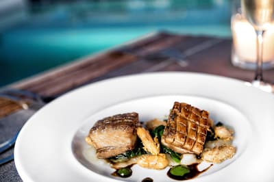 Installée au dernier étage, elle offre une vue panoramique époustouflante. La terrasse est aménagée d’une petite piscine et de longues chaises pour apprécier de merveilleux couchers de soleil en toute intimité. Idéale pour les couples, elle baigne dans une atmosphère romantique et sereine. Le salon est meublé de beaux fauteuils. Salle de bain chic.