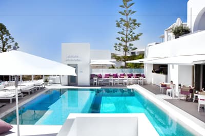 Quand on s’attend à la perfection, on est souvent déçu. Au Grace Mykonos, c’est tout l’inverse, car c’est encore mieux que ce à quoi on peut s’attendre dans un hôtel de cette catégorie. Situé au-dessus de la plage d’Agios Stefanos, ce très bel hôtel de charme offre une vue exceptionnelle sur la mer Égée. Son architecture, mêlant éléments traditionnels (murs blanchis à la chaux) et contemporains, s’intègre parfaitement au paysage. Mais surtout, ici, tout n’est que luxe, bien-être et détente. Romantique à souhait, le Grace Mykonos dispose de 31 chambres avec vue sur la mer, et certaines suites possèdent même une piscine privée ou un jaccuzzi. Autour de la piscine surplombant également la mer, les somptueux transats sont de véritables pièges à siestes, ce qui explique qu’ils soient parfois squattés toute la journée. Quant au petit-déjeuner, on vous prévient, il est limite orgasmique, vous pourrez même boire du champagne dès le réveil ! Mais ce qui fait toute la différence, c’est l’exceptionnelle qualité de l’accueil et du service du Grace Mykonos, juste irréprochables. Si vous venez à Mykonos pour faire la fête, le Grace Mykonos est un refuge idéal pour récupérer de vos nuits de folie.