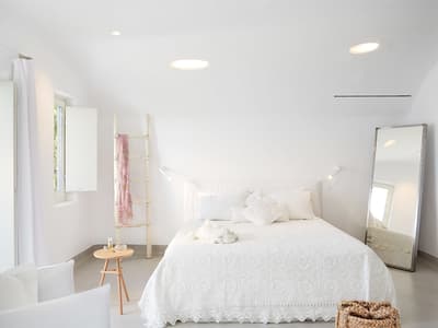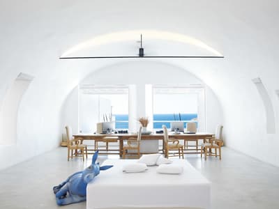Si vous avez prévu de séjourner au Grecotel Mykonos Blu, n’oubliez surtout pas vos lunettes de soleil, parce que vous allez en prendre plein les yeux ! Perché au-dessus de la célèbre plage de Psaros, le Grecotel Mykonos Blu est le refuge de tous les jet setters en mal de tranquillité. Tout de blanc immaculés, les bungalows et autres villas privatives s’étendent le long de la colline, tandis que la spectaculaire piscine à débordement semble plonger tout droit dans les eaux turquoise de la mer Égée. C’est tellement beau… et tout ça sans être photoshopé ! Au programme de votre séjour, chill et bien-être se tirent la bourre : qui gagnera la compet’ entre les transats sur la plage, les canapés moelleux des nombreux salons de l’hôtel ou les cabines de massage du Spa ? Vous en oublieriez presque que vous avez des enfants, car on a beau être à Mykonos, le Grecotel Mykonos Blu n’en reste pas moins un hôtel familial, et de nombreux services sont prévus pour le plus petits, à commencer par des menus spéciaux au restaurant et un service de baby-sitting sur demande : vous êtes quand-même en vacances sur l’île qui ne dort jamais, alors autant en profiter !