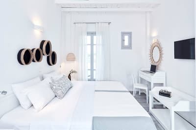 Un hôtel 4 étoiles simple et élégant qui fera le bonheur des couples ou des familles en vacances sur l'une des plus belles îles des Cyclades. Bref, un "monsieur et madame" qui n'a rien d'une blague et tout d'un rêve.