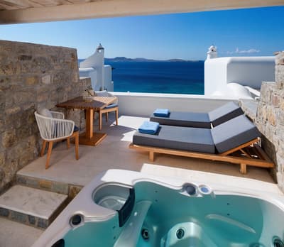 Calme, luxe et volupté : trois petits mots qui promettent un séjour parfait aux couples et aux familles en quête de vacances paisibles sur l'une des plus belles îles des Cyclades.