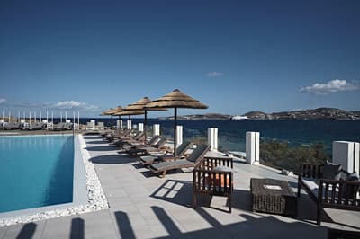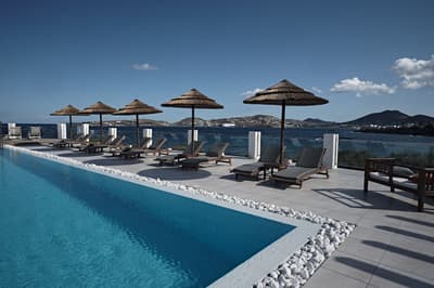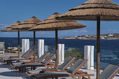 À emporter dans votre valise : un fouta-éponge pour la plage, des bijoux qui brillent au soleil pour l'apéro et une recharge iPhone pour les photos. Le Paros Bay s'occupe de la vue, des cocktails et de son emplacement exceptionnel.