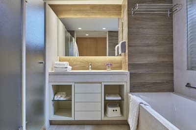 Conçue pour accommoder toute une famille, elle est spacieuse et confortable. L’une des chambres dispose de lits superposés pour les enfants. Le balcon est aménagé de fauteuils pour apprécier la vue partielle sur l’océan. C’est un cadre propice à la détente. Salle de bain avec baignoire ou douche.