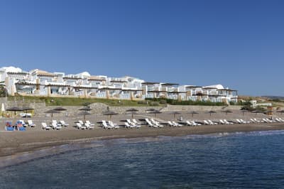 Une baie sublime, une mer cristalline, un hôtel de luxe à flanc de colline … Arrêtez de rêver et mettez le cap sur l’Atrium Prestige ! Un hôtel spa les pieds dans l’eau qui compte parmi les établissements les plus raffinés de Rhodes. Vous êtes sur la côte sud-est, sur la belle plage de Lachania. Un peu à l’écart des spots animés mais à l’abri du tourisme de masse. Avec tout ce dont vous avez besoin sur une superficie de 100 000 m². Dès l’arrivée, vous en prenez plein la vue tant le cadre est somptueux. Le lobby au design stylé est inondé de lumière. Sous vos yeux, des jardins luxuriants, des bâtiments élégants disposés en paliers et du bleu à l’infini. Entre la mer et les multiples piscines, vous avez l’impression d’être constamment entouré d’eau. Du bâtiment principal jusqu’aux bungalows et à la plage privée, les jolies allées serpentent entre palmiers et bougainvilliers. Certifiée Pavillon Bleu, la plage est accessible en 5 minutes à pied. Confortablement installé sur votre transat, vous commandez boissons fraiches et collations sur une application. A moins que vous ne préfériez tester l’un des quatre restaurants. Cuisine grecque, italienne ou asiatique, tout est délicieux et les serveurs sont aux petits soins. Et pour travailler votre summer body, aucun souci ! Des activités sont proposées toute la journée, du tennis au fitness en passant par le yoga. Sans oublier les traitements haut de gamme du spa avec vue à tomber sur la Méditerranée !