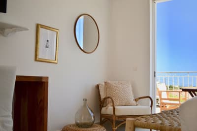 Située au 1er étage, elle profite d’une belle vue. Elle baigne dans une atmosphère légère et sereine. Elle accommode un lit double ou des lits simples. Le coin salon est meublé de fauteuils confortables et originaux pour un moment de détente. Salle de bain chic avec douche.
