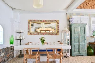 D’une simplicité exquise, elle est parfaite pour se couper du quotidien. Elle mélange bois, rotin et verre pour une décoration exotique et légère. Elle est vraiment cosy. De beaux tableaux parsèment la pièce la rendant vivante. Elle baigne dans une palette de couleurs chaudes pour un ensemble accueillant.
