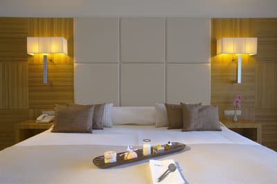 Cette belle suite dispose d’un espace généreux et confortable. Son balcon aménagé de belles chaises profite d’une belle vue sur l’océan turquoise. Le coin salon est meublé d’un canapé et elle dispose d’un petit bureau. Elle peut accueillir un grand lit ou des lits jumeaux. Salle de bain chic avec baignoire.