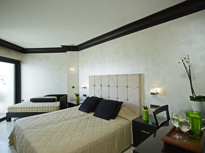 Elle profite d’une vue époustouflante sur la mer d’Égée ! Le balcon est aménagé de belles chaises pour apprécier le cadre reposant. Elle accommode un lit double et un petit bureau dans un coin de la chambre. Salle de bain avec une baignoire et une douche à effet de pluie.