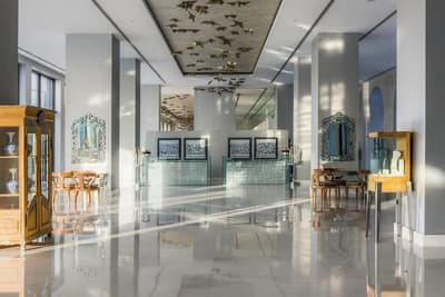 Dans le genre grand et bel hôtel moderne, le Mitsis Selection Alila se pose là. Le long de l’immense plage de Falikari certifiée drapeau bleu, le bâtiment principal en impose, et vous serez bluffé dès votre arrivée dans le hall, immense et somptueux, à l’image de tout le reste de l’hôtel. Ça y est, vous êtes en vacances, alors une fois les bagages déposés dans votre chambre, vous pouvez vraiment tout oublier, même votre porte-monnaie, parce qu’au Mitsis Selection Alilaf, vous séjournez en formule tout inclus, et ici tout est vraiment inclus, même le champagne, à consommer quand-même avec modération. Et puis vous ne risquez pas de vous ennuyer, parce qu’entre les équipements sportifs, les animations, la plage et le spa, il y en a carrément pour tout le monde. On parie juste que les plus jeunes passeront le plus clair de leur temps dans la piscine à toboggans. Ce qu’on voulait malgré tout vous dire, c’est qu’hormis votre crème solaire, il y a deux choses à ne pas oublier de mettre dans vos valises : des sandales de plage pour aller vous baigner dans la mer, mais ça tombe bien, les méduses sont très tendance cette année, et des boules quies si vous avez le sommeil un peu léger, car c’est l’inconvénient de ce genre de grand resort, tous les clients ne sont pas forcément délicats, et entre ceux qui se lèvent tôt et ceux qui se couchent tard, certains feront peut-être un peu trop de bruit à votre goût. Pour le reste, vous serez vraiment au top.