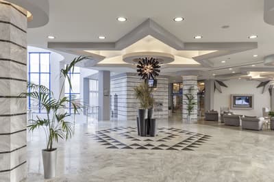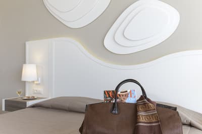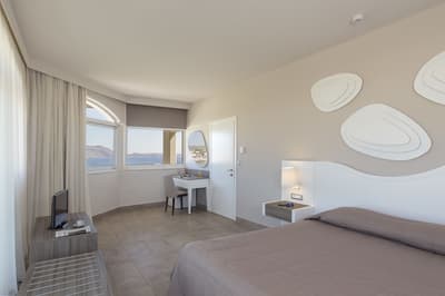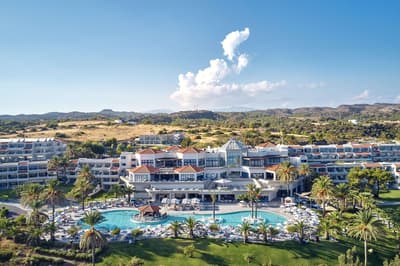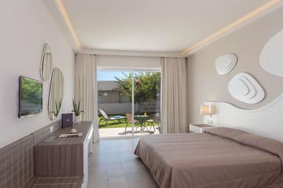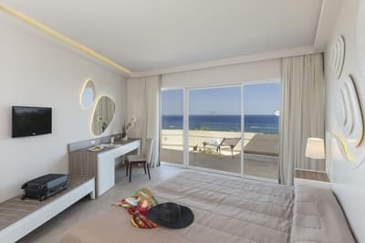 Vous voulez une eau bleu lagon pleine de petits poissons sans faire 12 heures d’avion ? Sortez vos masques et tuba ! Au Rodos Princess Beach, l’émerveillement, c’est maintenant ! Juste devant vous, ce petit sentier permet d’accéder à pied à la plage de Galouni, l’une des plus belles de l’île. Incontestablement l’un des points forts de ce 4 étoiles situé au Sud-Est de l’île de Rhodes. Vous allez voir, ce n’est pas le seul ! Heureuse surprise, les chambres se trouvent dans différentes petites unités réparties dans un immense jardin regorgeant de fleurs et d’agaves. Pas de bâtiment trop imposant ni de sensation de tourisme de masse. Autour de vous, une ambiance hyper lumineuse avec mélange de couleurs vives : le vert des palmiers contraste avec le bleu des piscines sur fond de blanc éclatant des murs passés à la chaux. A l’intérieur des chambres, un camaïeu de tons ocres et beiges, du bois naturel et des lignes douces. Une déco sans prétention. Plutôt reposant, non ? Après une petite sieste, il est grand temps de faire le repérage des 5 piscines dispersées dans le resort. Sous les vivats de vos enfants, vous vous décidez à tester les toboggans. Plongeons et fous rires assurés. Vous avez bien mérité une glace à l’italienne. Ça tombe bien, le bar est juste à côté. Juste le temps de confier les enfants au mini-club et à vous la salle de fitness. Ou pas …