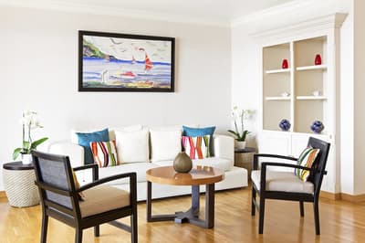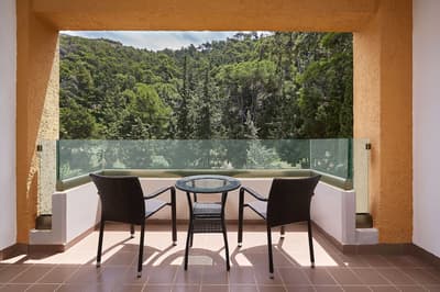 Entourée par la végétation luxuriante, elle baigne dans une atmosphère sereine. Le balcon est aménagé de belles chaises pour apprécier le cadre relaxant. Elle dispose de lits jumeaux et d’un petit coin salon meublé de fauteuils confortables. Salle de bain chic.