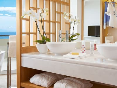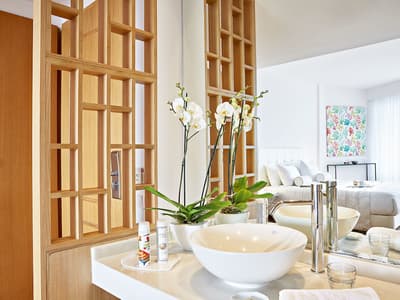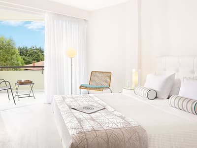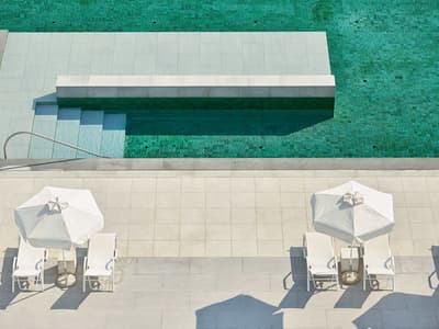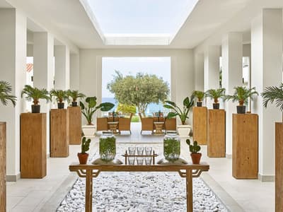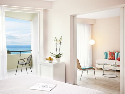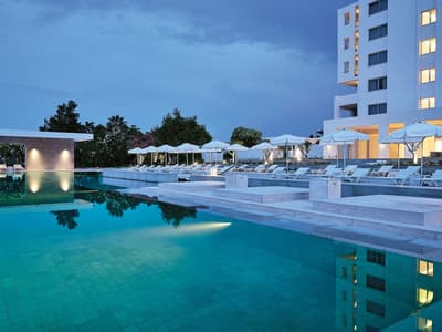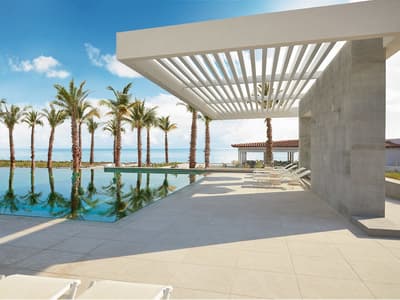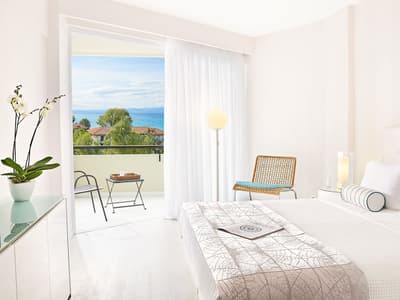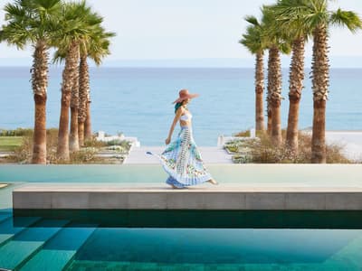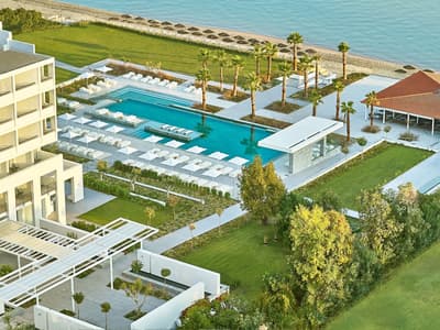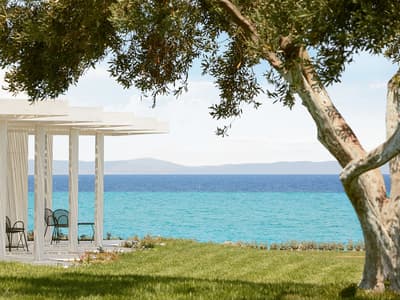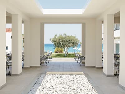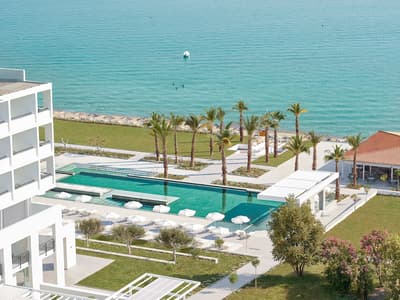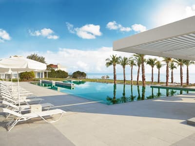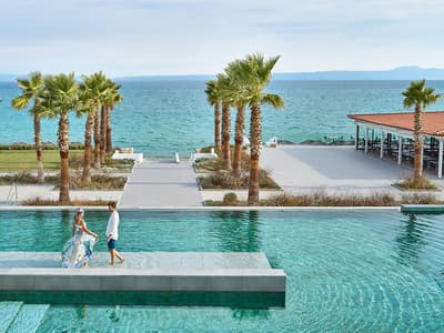 Ambiance chill & fun au Domes Noruz Kassandra, un bel hôtel familial où les piscines se confondent avec la mer, sur une plage labellisée Pavillon Bleu.