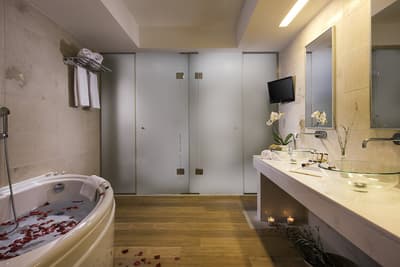 Si vous rêvez de palmiers et d’eau turquoise dans un hôtel paisible avec spa et cours de yoga, vous êtes au bon endroit avec le Kassandra Palace Seaside Resort. Pas de malédiction de Cassandre ! Vous pouvez nous croire, c’est la sérénité assurée dans cet espace végétal de 70 000 m², face à cette mer turquoise. Dans votre chambre, le minimalisme règne avec des tons bruns et sable apaisants. Avec vue sur la mer Egée pour certaines ! Enfilez votre maillot de bain et partez vous baigner dans cette eau pure hypnotique, ou misez sur les longueurs dans la piscine olympique pour vous dégourdir les muscles. Après, ça, offrez-vous une séance de relaxation dans le sublime spa avec sa piscine intérieure et son hammam en marbre, canon. Et pourquoi pas réserver un soin ou un massage rajeunissant, spécialité de la maison ? Vous avez bien mérité votre cocktail au bar de la piscine ou de la plage, au choix ! Avant d’aller vous régaler de spécialités grecques, que ce soit au buffet ou au restaurant Le Magnolia. A moins que vous soyez tentés par l’expérience asiatico-péruvienne au Fiki Fiki ! On apprécie vraiment la tranquillité des lieux, et toute cette végétation qui nous entoure. Au top en couple, mais si vous venez avec les kids, pas de souci, tout est pensé pour eux aussi.
