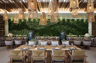 Chic et luxueuse, c’est le top ! Le mélange de bois, de verre et de rotin créent un ensemble harmonieux. Les meubles de couleur miel ajoutent de l'exotisme et de belles lampes une touche d'élégante. La baie vitrée laisse pénétrer la lumière naturelle pour la rendre lumineuse et accueillante. Elle est légère.