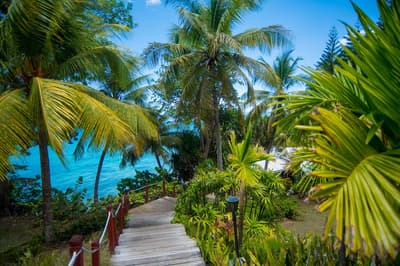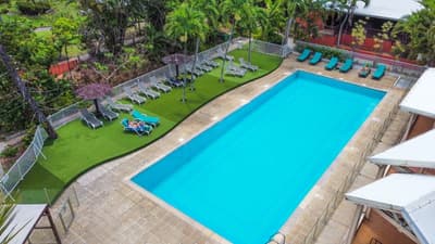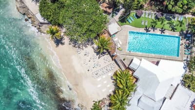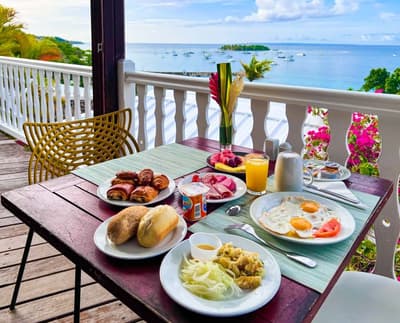 Le site est magnifique ! Le jardin de 3 hectares, le panorama sur la mer et cette superbe crique de sable blanc en disent long sur la carte postale qui vous attend. L'auberge est en réalité un hôtel 4 étoiles logé dans différentes structures : un bâtiment historique qu'est cet incroyable moulin à vent du XVIIIe s. et des bâtiments plus modernes en rez-de-jardin, où se trouvent les chambres. La belle piscine et son solarium dominent. On aime l'esprit colonial qui souffle encore ici, avec cette varangue, ces murs de pierres apparentes et ce bar tout bois et ses fauteuils patinés comme sortis d'un vieux film. C'est tout le charme du lieu, le côté chambres étant il faut le reconnaître, un peu défraîchi et un peu daté côté déco. Mais tout cela est bien entendu subjectif. Toujours est-il que les extérieurs sont envoûtants ! Le restaurant lui aussi profite de la vue. Ne soyez pas étonné en tout cas de voir passer un iguane depuis la fenêtre de votre salle de bain !