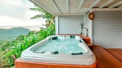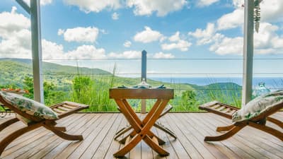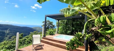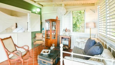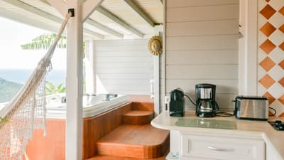 Oubliez le fracas de la ville, la foule et le bruit. Vous êtes ici dans une petite bulle de tranquillité, complètement paumée dans un coin sauvage de Basse Terre, en Guadeloupe. Bienvenue à Beauséjour Guesthouse et ses gîtes perchés à 300 mètres d’altitude dans une ancienne caféière isolée et entourée de verdure. En face, il n’y a que des arbres et vous ne risquez pas de croiser grand monde, vu qu’il n’y a que quatre logements dispo au total. Le comble de l’intimité. Niveau confort, on est au top : non seulement les belles cases typiquement créoles tout en bois proposées par Laurence et David sont grandes (90 m², quand même), mais elles comprennent une terrasse panoramique avec une super vue sur les montagnes et la mer, et aussi un jacuzzi privé pour buller pépère sous le soleil des Caraïbes. Sentez les alizés vous caresser les joues en piquant un roupillon dans le hamac ou en préparant un barbecue à la tombée de la nuit en rentrant de la plage. Pas envie de cuisiner ? Faites appel à vos hôtes, ils vous livreront un petit déj' ou un dîner aux couleurs locales directement sur votre terrasse. Pas d’idées pour vos escapades dans les environs ? Notre duo de choc saura vous conseiller un bon plan pour aller faire coucou aux baleines, partir explorer la nature en compagnie d’un guide local ou vous initier à l’art de la plongée sous marine. Voilà qui mérite bien les efforts faits pour gravir la pente qui mène à l’établissement. Un très bon plan pour les sauvageons en quête de tranquillité et de connexion à la nature, avec un côté comme à la maison qui fait plaisir. Beauséjour mérite bien son nom !