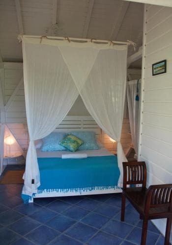 Construite en bois exotique, elle profite d’un décor raffiné et se complète par des accessoires artisanaux. La chambre climatisée est dotée d’un lit queen-size avec des draps et une literie de qualité et la salle de bains est équipée d’une douche à l’italienne. Le tout dans une atmosphère tropicale !