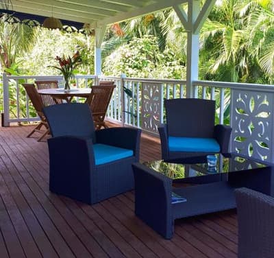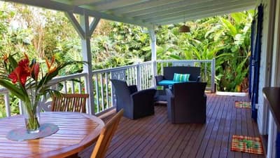 Nichée dans le jardin tropical luxuriant du domaine TIPAREO, elle profite d’une terrasse couverte en bois exotique d’où vous pourrez vous détendre et contempler les vues sur la mer des Caraïbes, la montagne et au loin l’île de Montserrat.