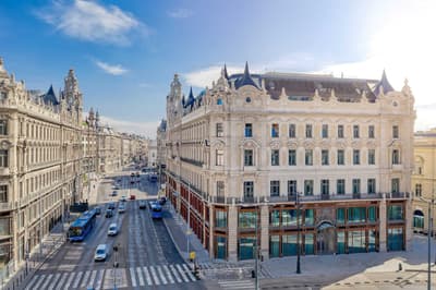 Séjournez dans un palais Belle Époque restauré, avec un spa sensoriel, un restaurant étoilé et un café-cabaret historique, en plein cœur de Budapest.
