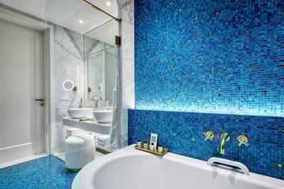 Il y a d’un côté les hôtels 5 étoiles, de l’autre le Matild Palace. Clairement, ils ne jouent pas dans la même cour. Le Matild Palace surpasse tous les autres. Imaginez un joyau Belle Époque classé monument historique, qui fusionne le patrimoine royal et l’audace contemporaine dans un décor somptueux. Du luxe vraiment très stylé ! Dès le lobby, ça claque : des sols en marbre, du bois précieux, des dorures, des mosaïques Zsolnay, un lustre en porcelaine et une incroyable hauteur sous plafond. Ça donne le ton : l’élégance est de mise et les touches contemporaines subliment la grandeur des lieux. Un twist qui parle forcément aux amateurs de belles choses. Le palace squatte la partie orientale des historiques Palais Klotild qui composent une porte symbolique à l'entrée du Pont Erzsébet. Depuis le rooftop, on profite du coup d’un panorama envoûtant sur le Danube et les montagnes de Buda. Le rêve ! Côté gastronomie, c’est un chef étoilé qui est à la barre d’un établissement ultra stylé avec des soirées piano-concert pour rappeler le cabaret des origines. Enfin, un spa qui mixe la grande tradition des thermes hongrois avec le raffinement des bains turcs. Et pour couronner le tout, l'esprit écolo est là, du zéro-plastique au potager urbain.