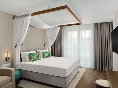 Spoiler alert : vos kids vont devenir complètement dingue en découvrant ce resort. Le Mövenpick BalaLand est un hôtel à thème qui vous embarque pour le tour du monde en 80 jours de Jules Verne, en version XXIe siècle, plus fun et plus acidulée. Dès le lobby, vous êtes dans l’ambiance. Vous voici immergés dans un décor aquatique avec des références à la SF et la littérature rétro-futuriste. Illusions d’optique et jeux de miroir, modules ludiques spectaculaires, mappemonde vintage, tout a été pensé comme une pièce de théâtre magistrale où chaque recoin cache un nouveau souvenir à instagrammer. Trop stylé ! Pas besoin d’aller à Disney, ici il y a tout : piscine géante, châteaux à escalader, manège de dirigeables. Côté ambiance, le resort est construit dans un style caribéen néo-colonial avec de belles chambres baignées de lumière, des espaces salon très cosy et de nombreux espaces de restauration. Bref vous avez compris le concept : ici on réserve pour des vacances fun et émerveillées avec toute la family. Et en plus, le Mövenpick BalaLand est certifié Green Globe et s’engage à réduire les déchets, optimiser l’énergie et l’eau et valoriser les biodéchets en boucle fermée.