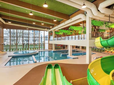 Un resort five stars sur le thème Jules Verne, bordant le lac Balaton, qui combine parc d'attractions, spa panoramique et ambiance tropico‑coloniale.