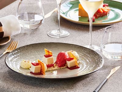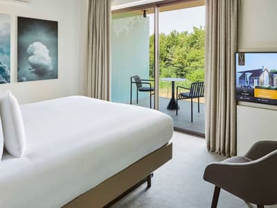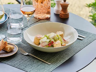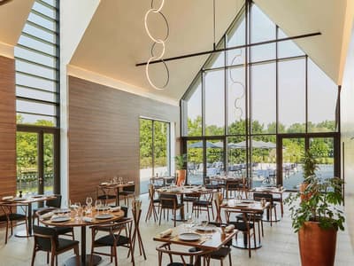 Envie d'un séjour reposant entre nature et architecture ? Le Domaine des Vanneaux Golf & Spa MGallery se niche au creux de la vallée de l’Oise. L'archi signée Jean-Michel Wilmotte est un subtil et discret mariage entre le bois, la tôle et le verre. À l’intérieur, les espaces communs sont baignés de lumière naturelle. Les chambres, ouvertes sur la nature environnante grâce aux baies et aux balcons, vous invitent vraiment au repos. Depuis votre lit, la vue est juste imprenable sur la forêt ou le Golf de L'Isle-Adam ! Et de votre salle de bains au spa, le fil conducteur, ce sera les produits Cinq Mondes. # relaxation Vous vous demanderez même pourquoi quitter le spa ! Ben pour partir découvrir les alentours, mais aussi pour golfer : le parcours de L’Isle-Adam, situé au pied de l’hôtel, figure souvent parmi les plus beaux d’Île-de-France. Et à l’heure de manger, vous serez plutôt dîner improvisé ou raffiné ? Bistro ou gastro ? Que ce soit au resto la Plume ou au Piaf, le jeune chef Pierre Meneau mitonne une cuisine aux petits oignons… bio, basée sur des produits régionaux qui varient selon les saisons. D’ailleurs, l’hôtel est engagé en faveur du tourisme durable et c'est un super bon point !